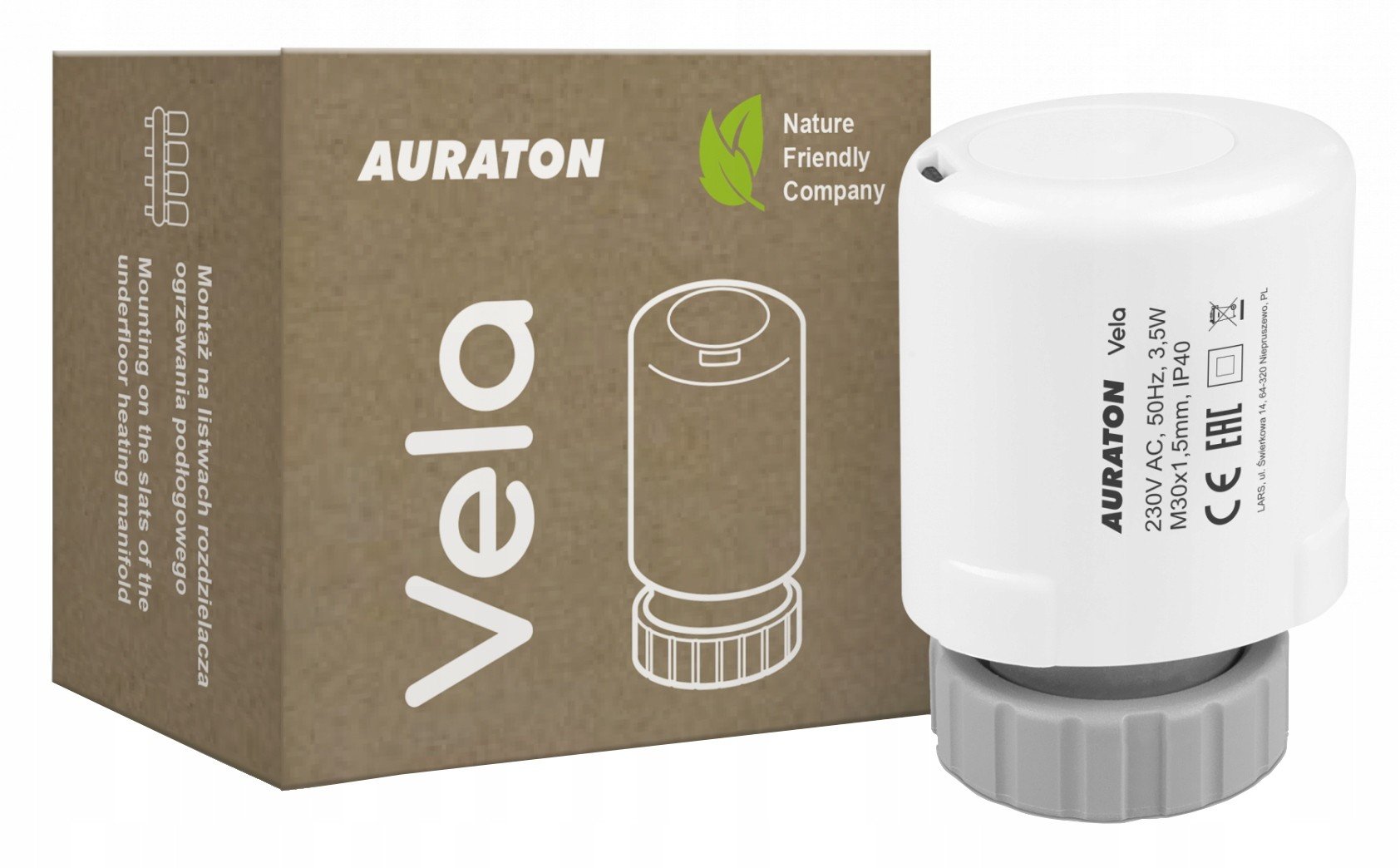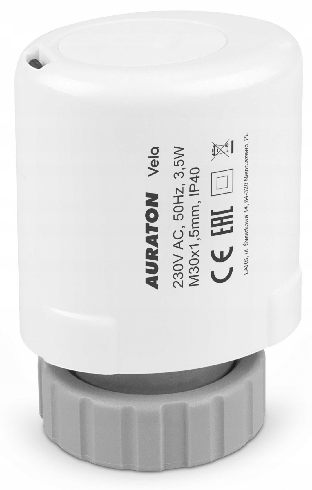 AURATON Vela este un actuator termoelectric. AURATON Vela este un element indispensabil al sistemului de încălzire, dedicat instalării pe lamele colectorului de incalzire prin pardoseala. Servomotorul este disponibil cu un singur tip de filet: M30x1,5 mm. Se caracterizează prin durabilitate și versatilitate, iar avantajul său este o funcționare liniștită și lină. În cooperare cu benzile cu fir AURATON și controlerele de temperatura AURATON ,acesta permite controlul automat al temperaturii în fiecare zonă de încălzire a clădirii. AURATON Vela are dimensiuni compacte și este ușor de instalat.