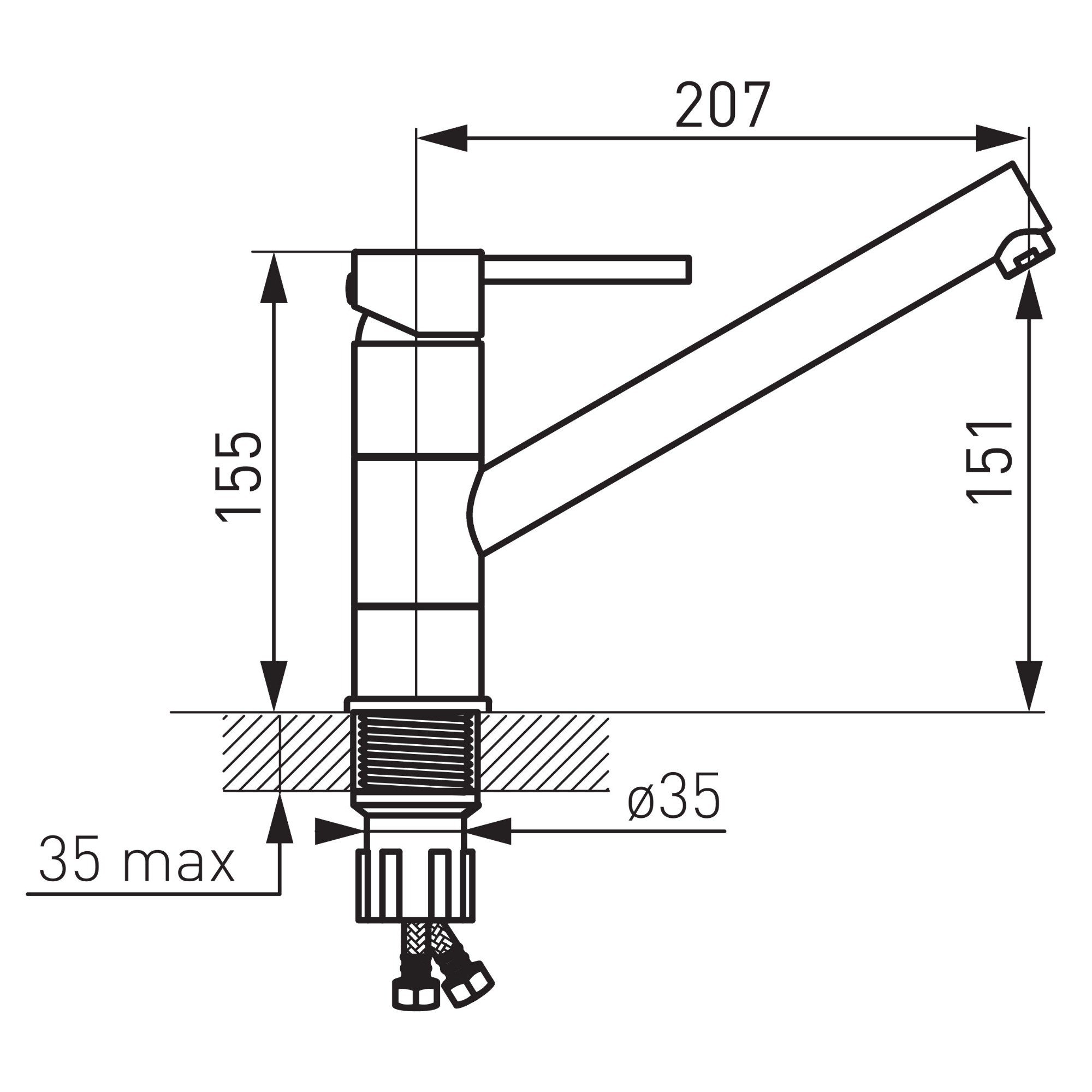 Produsul poate fi montat atat pe blat, cat si pe lavoar, este realizat din alama, cu finisaj cromat. Pipa este pivotanta, produsul dispune de monocomanda, montare cu un singur orificiu si racorduri flexibile de conectare