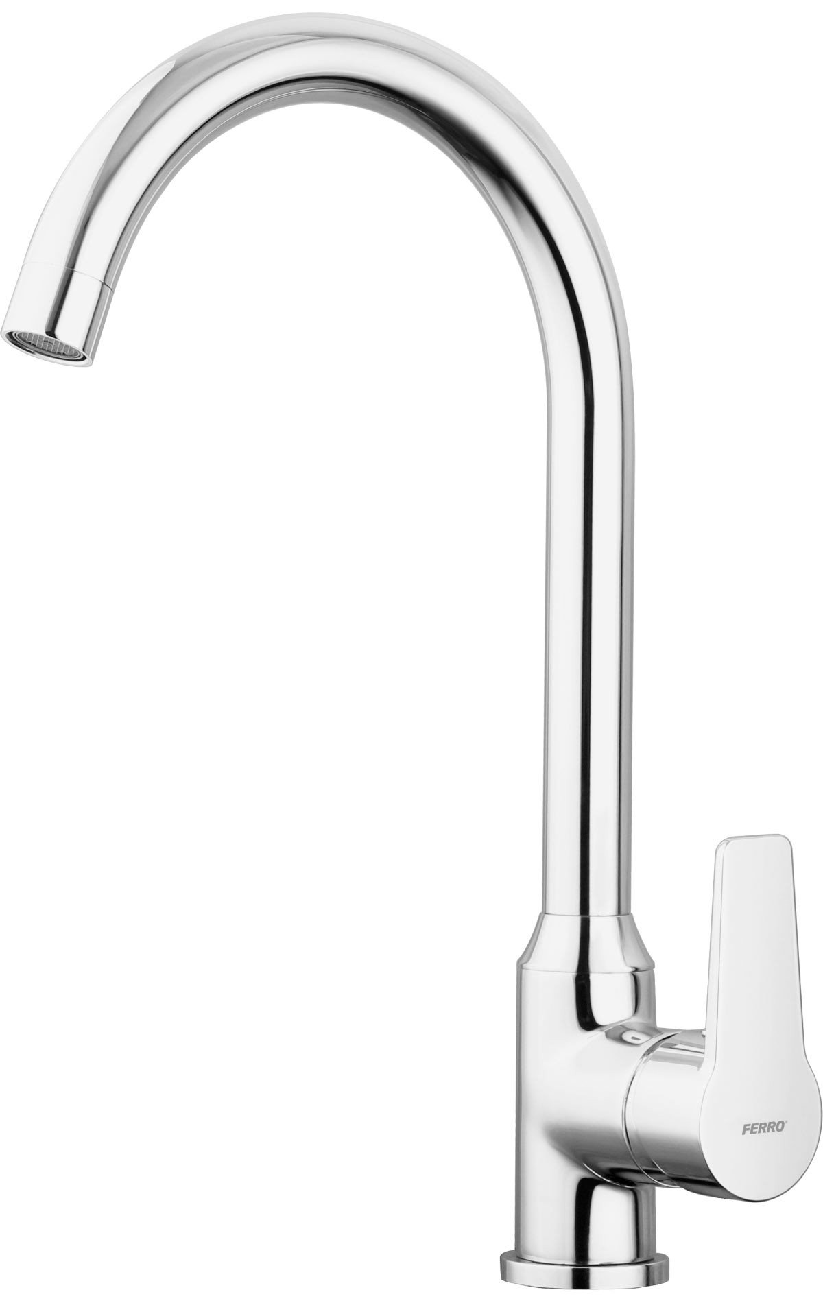 Bateria pentru bucatarie Ferro Ritto are un design modern cu finisaj crom si este prevazuta cu pipa inalta si mobila.