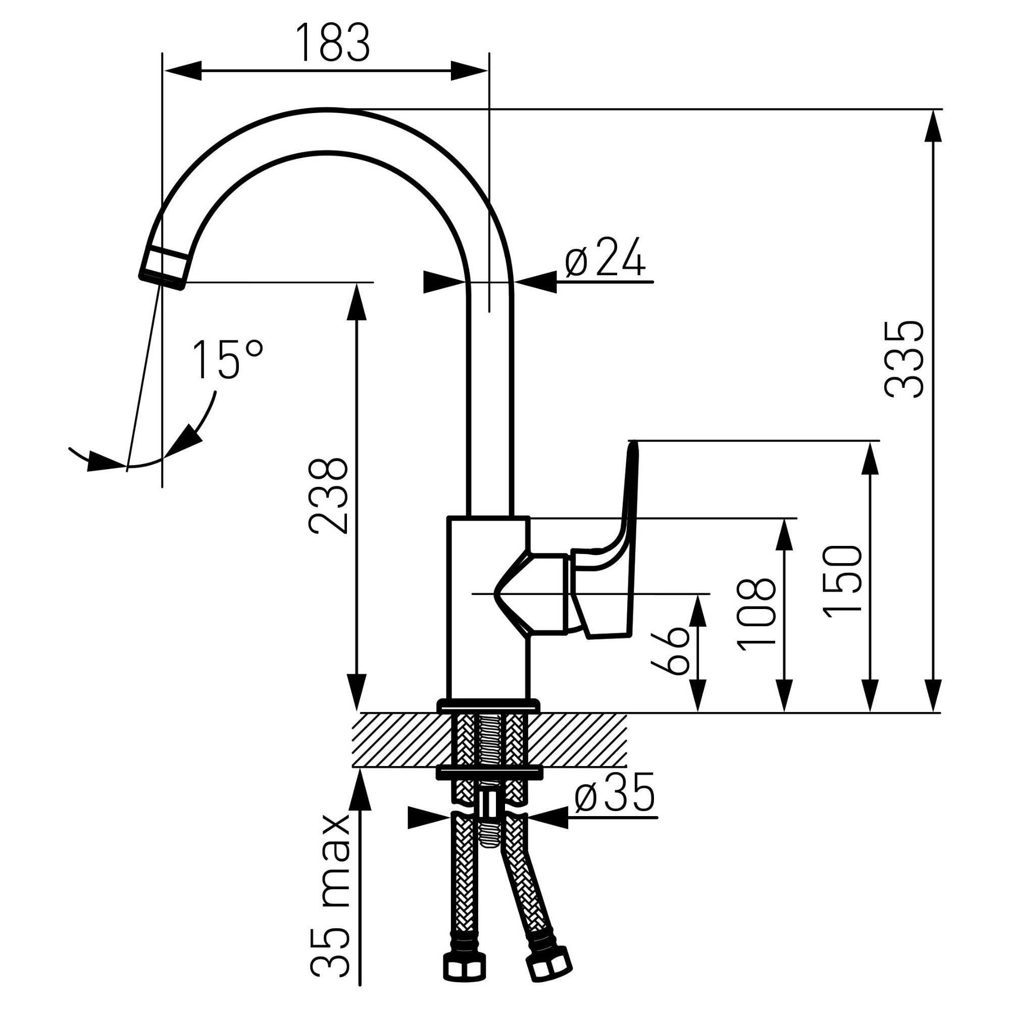Bateria stativa pentru bucatarie Ferro Tiga VerdeLine este fabricata din alama sanitara cu finisaj cromat.