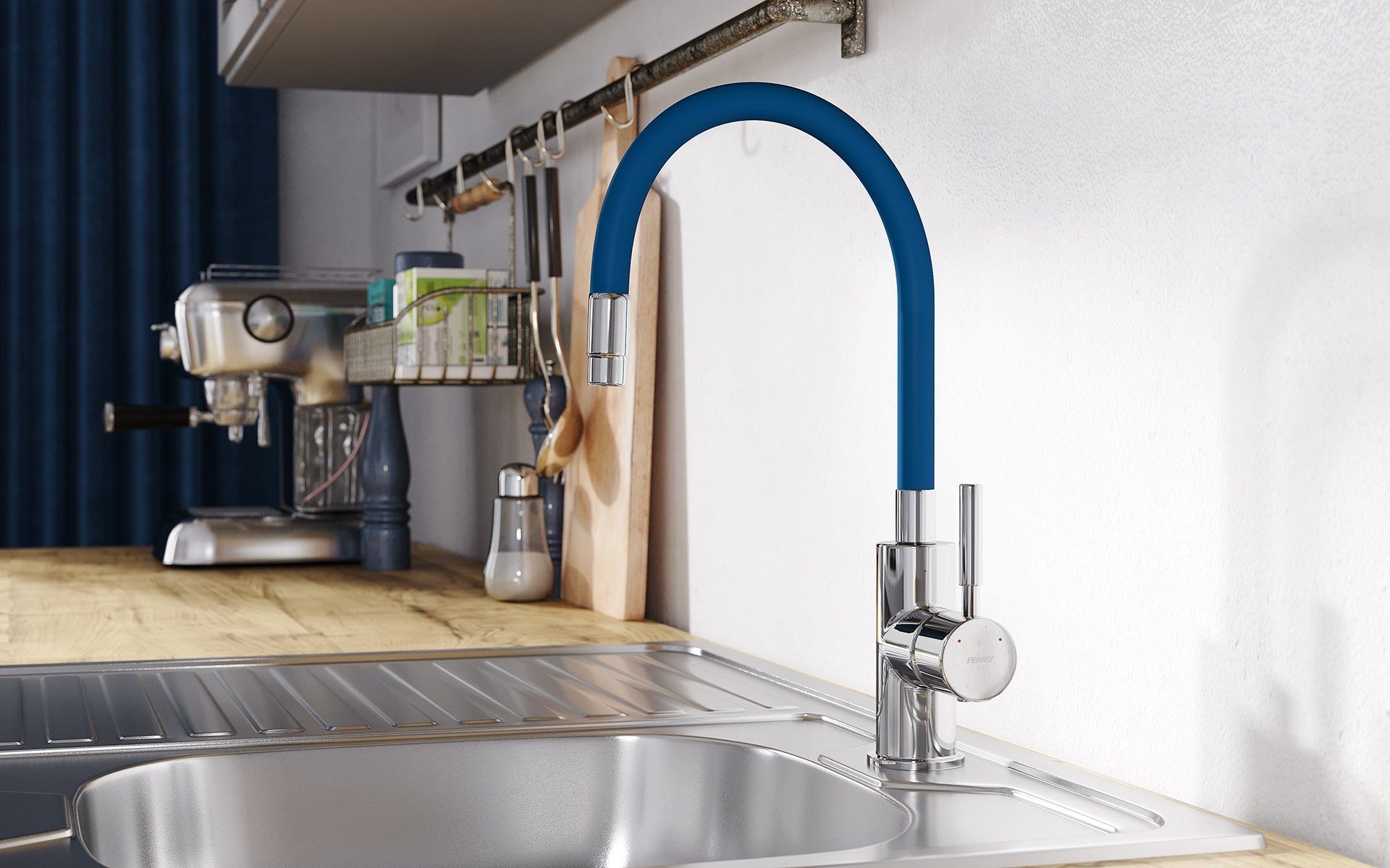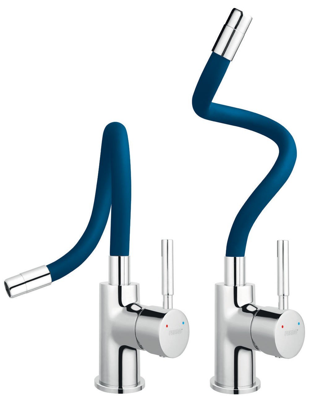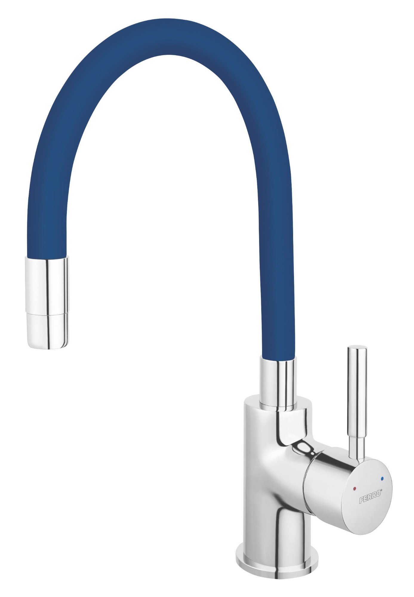 Baterie bucatarie Ferro Zumba cu pipa flexibila albastra BZA4L