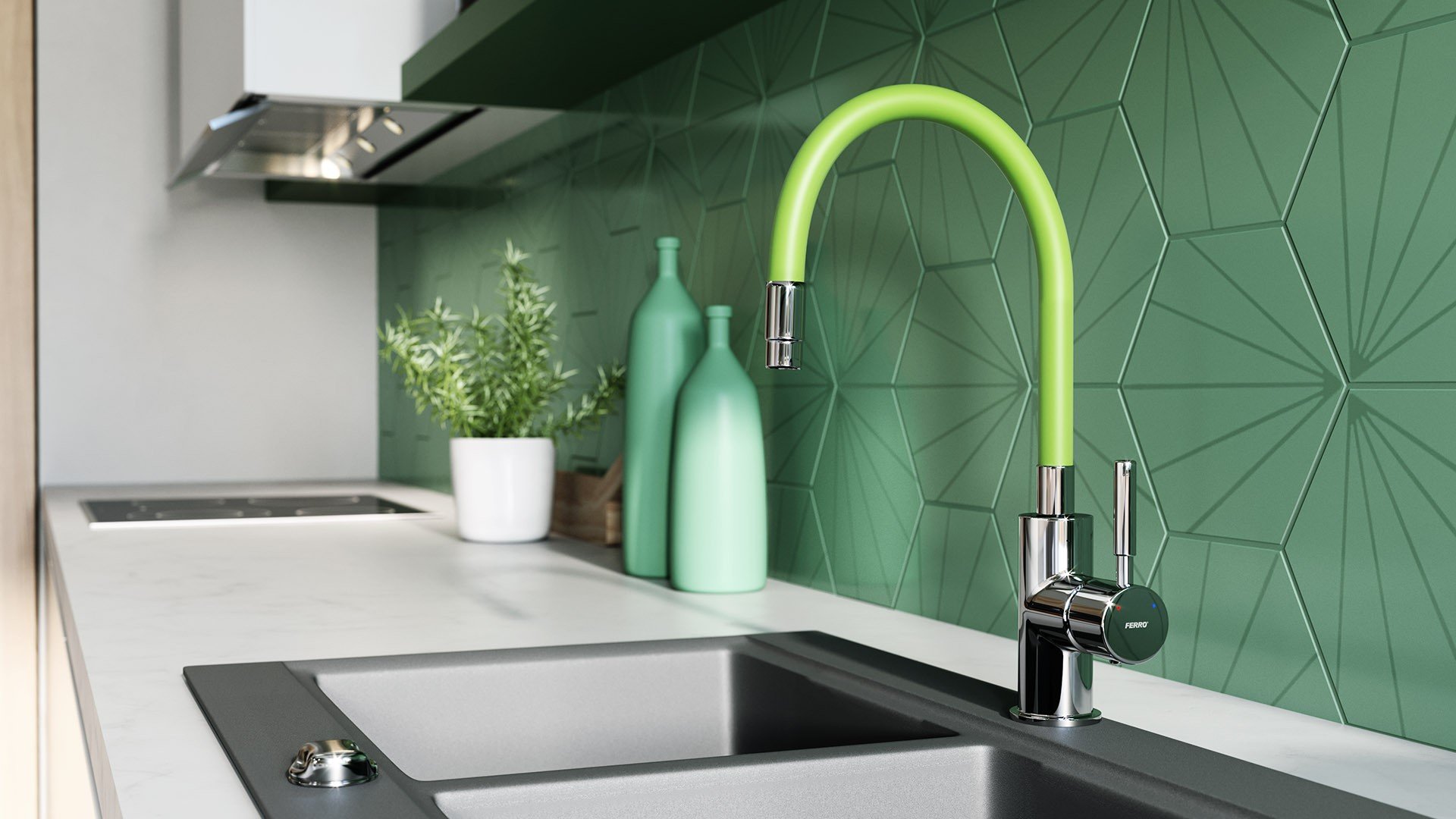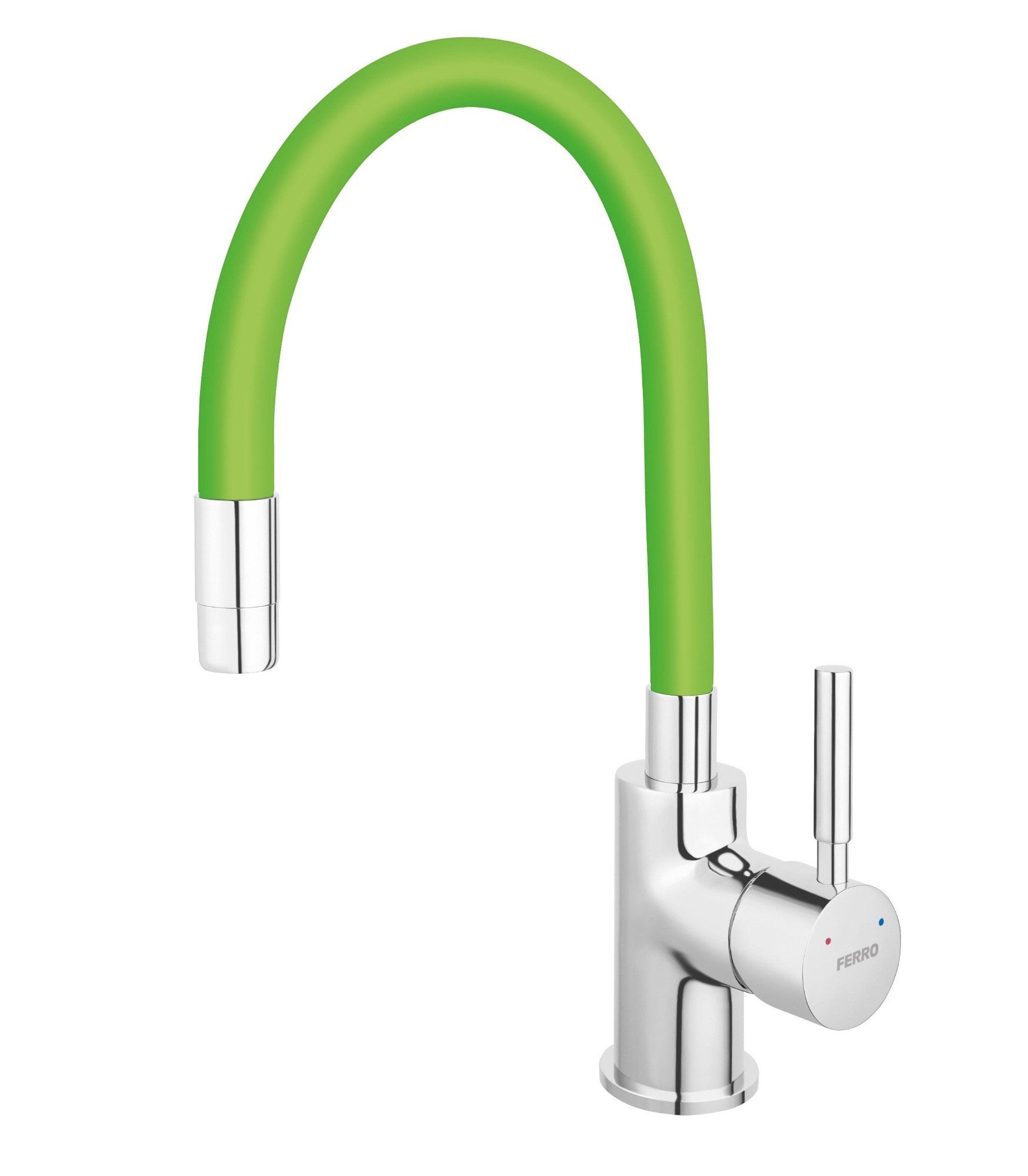 Baterie bucatarie Ferro Zumba cu pipa flexibila verde BZA4G