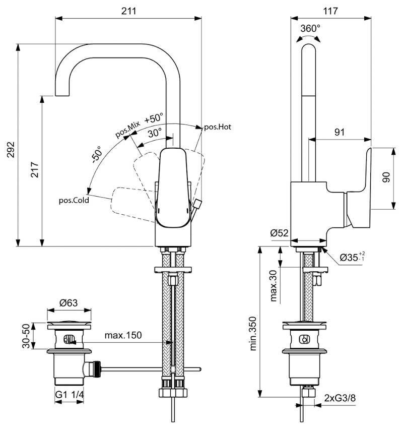 Bateria B0706AA din gama Ceraplan de la Ideal Standard, este o baterie de bucatarie/lavoar, cu montaj stativ, pe chiuveta sau lavoar. Aceasta este prevazuta cu un maner plin, lateral, deschiderea si inchiderea se realizeaza prin actionarea levei in directia sus-jos. Prin actionarea spre stanga sau spre dreapta a manerului se regleaza temperatura apei.