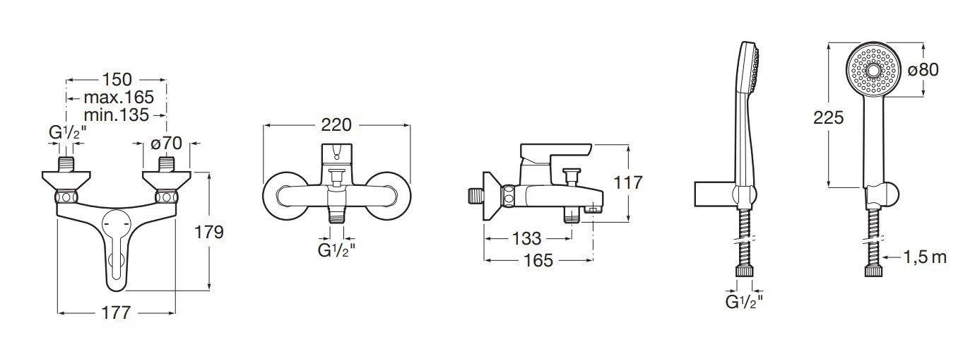 Baterie cada sau dus Roca Saona cu accesorii (para de dus mobila, furtun flexibil, agatatoare de dus) A5A017AC0K