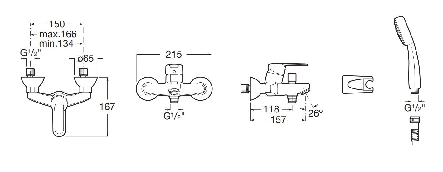 Baterie dus sau cada Roca Victoria cu accesorii (para de dus mobila, furtun flexibil, agatatoare de dus) A5A0125C02