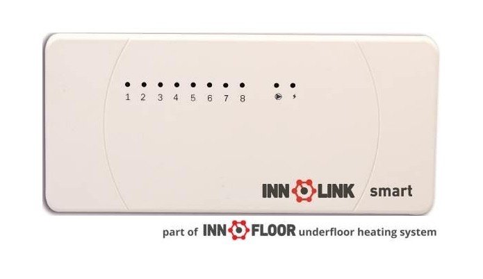 INNOLINK SMART RF poate primi până la 8 bucle de semnal de control venind de la 8 termostate de cameră RF (wireless) și controlează actuatoarele vanelor aferente termostatului / zonei respective. În plus, că unitate centrală de control,poate controla cazanul și pompă de circulație.