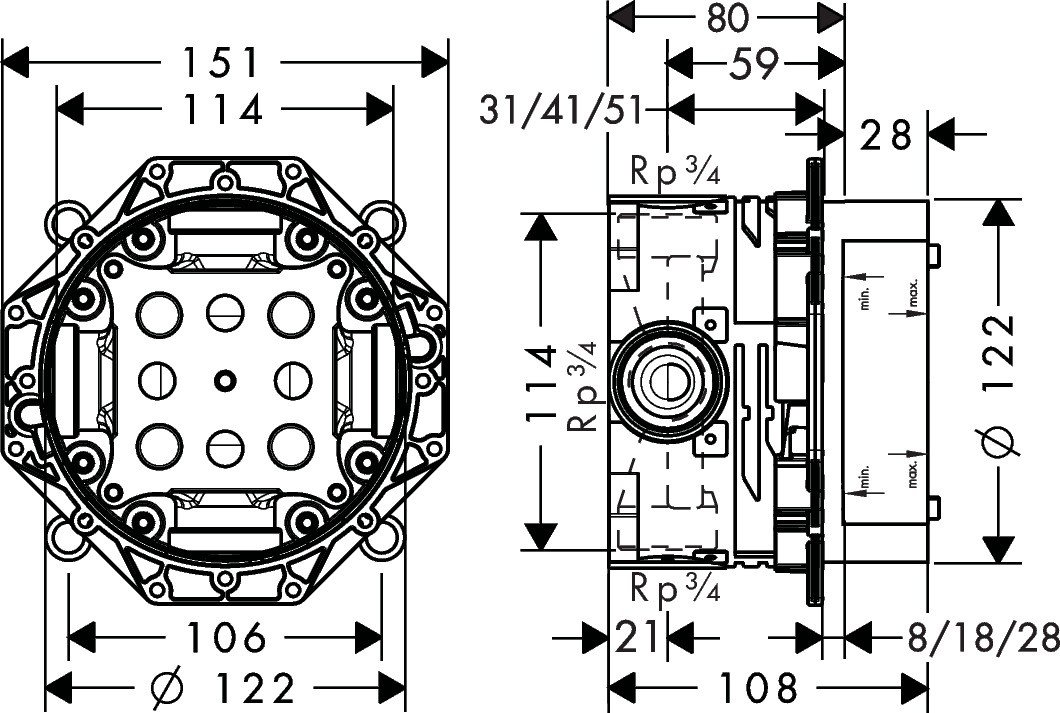Corpul incastrat 01800180 IBOX de la Hansgrohe, este universal si reprezinta baza necesara instalarii mai multor colectii de baterii pentru baie incastrate Hansgrohe. Avantajul tehnologiei incastrabile este o baie frumoasa din punct de vedere estetic, cu un design modern, tevile ramanand ascunse in perete.
