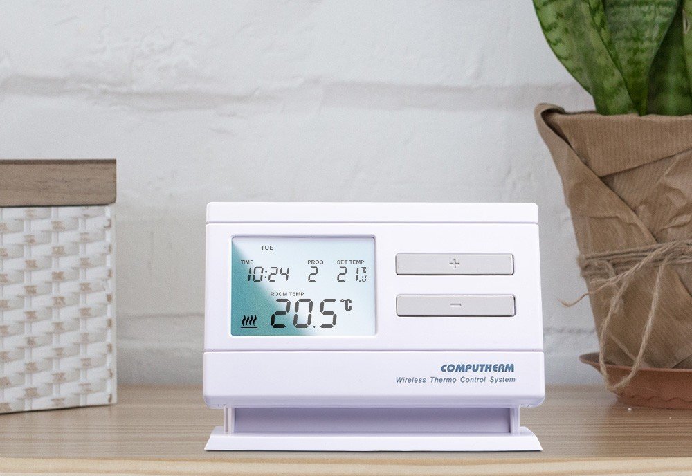 Termostatul de cameră COMPUTHERM Q7RF este un termostat programabil cu funcționare wireless (fără fir) și este adecvat pentru comandă unui aparat de încălziresau de climatizare, fiind compatibil cu majoritatea cazanelor de încălzirecentrală comercializate înRomânia.