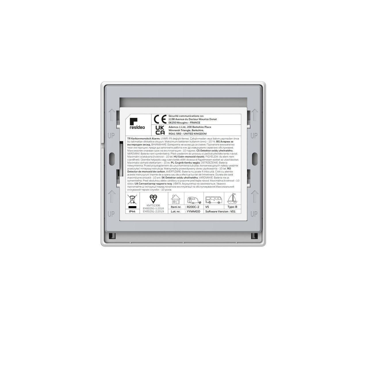 Designul detectorului de monoxid de carbon Honeywell Home R200C-2 nu se rezuma doar la performanta, ci si la durabilitate. Cu un grad de protectie IP44, acest detector este rezistent la intrarea de particule solide si stropi de apa, asigurand functionarea fiabila in diverse conditii.