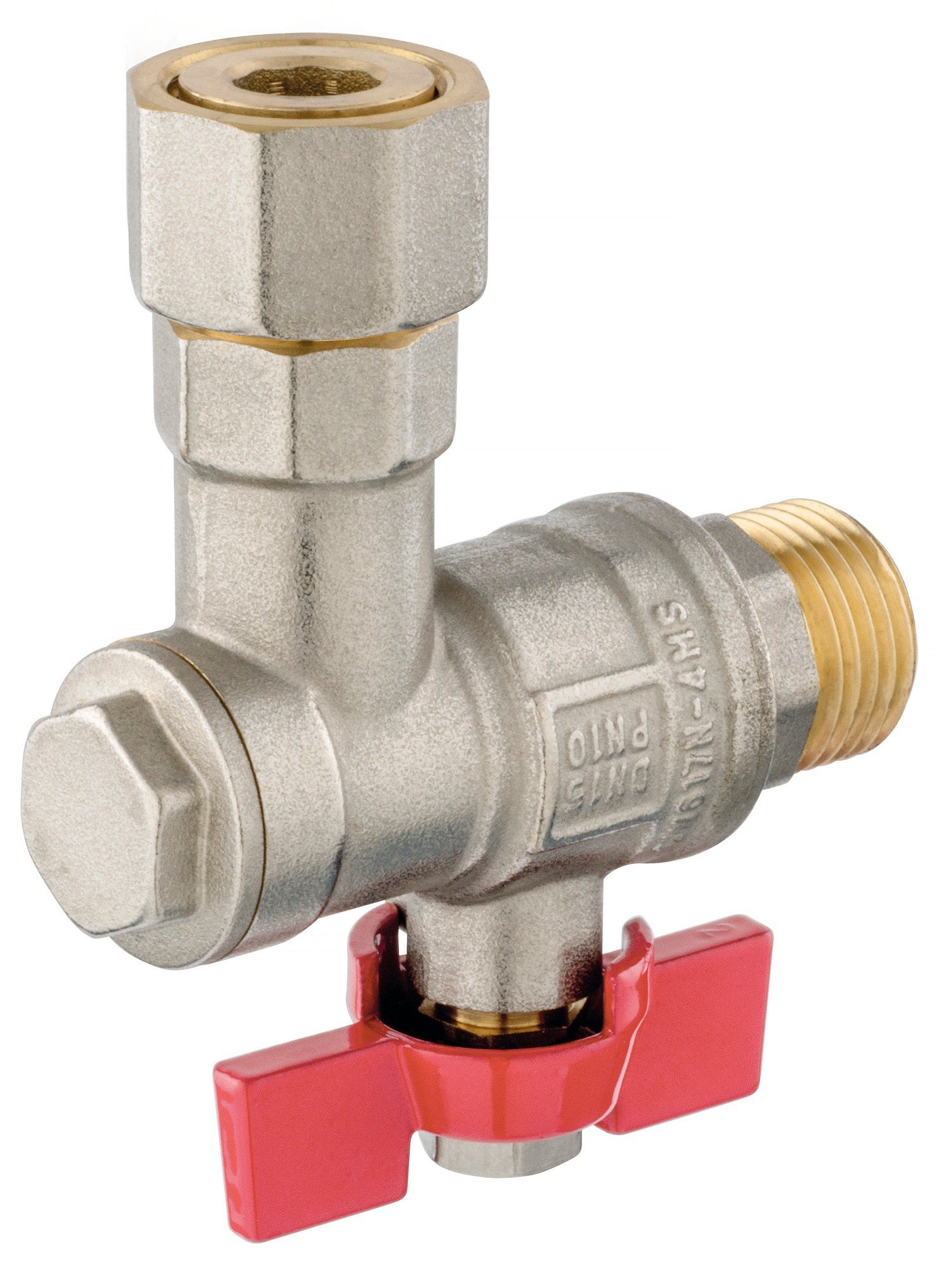 Robinetul cu bila este realizat din alama, cu garnitura din PTFE si fluture rosu din metal, care ii ofera o structura simpla si eficienta.