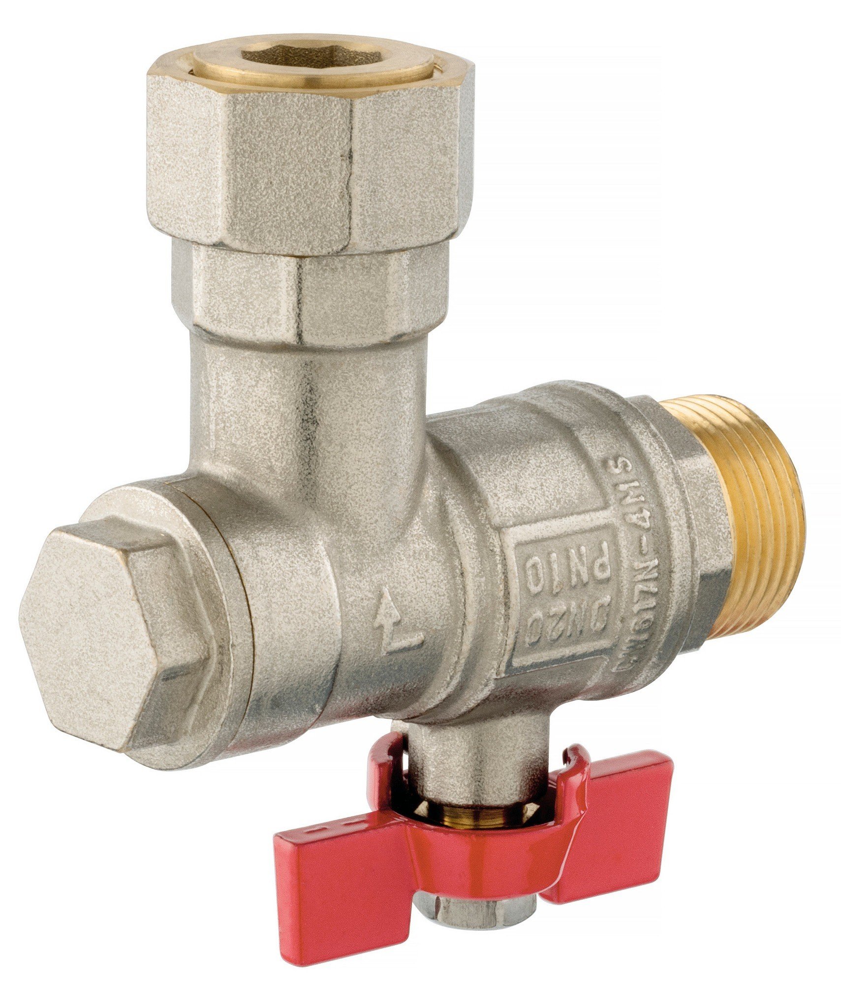 Robinetul cu bila este realizat din alama, cu garnitura din PTFE si fluture rosu din metal, care ii ofera o structura simpla si eficienta.