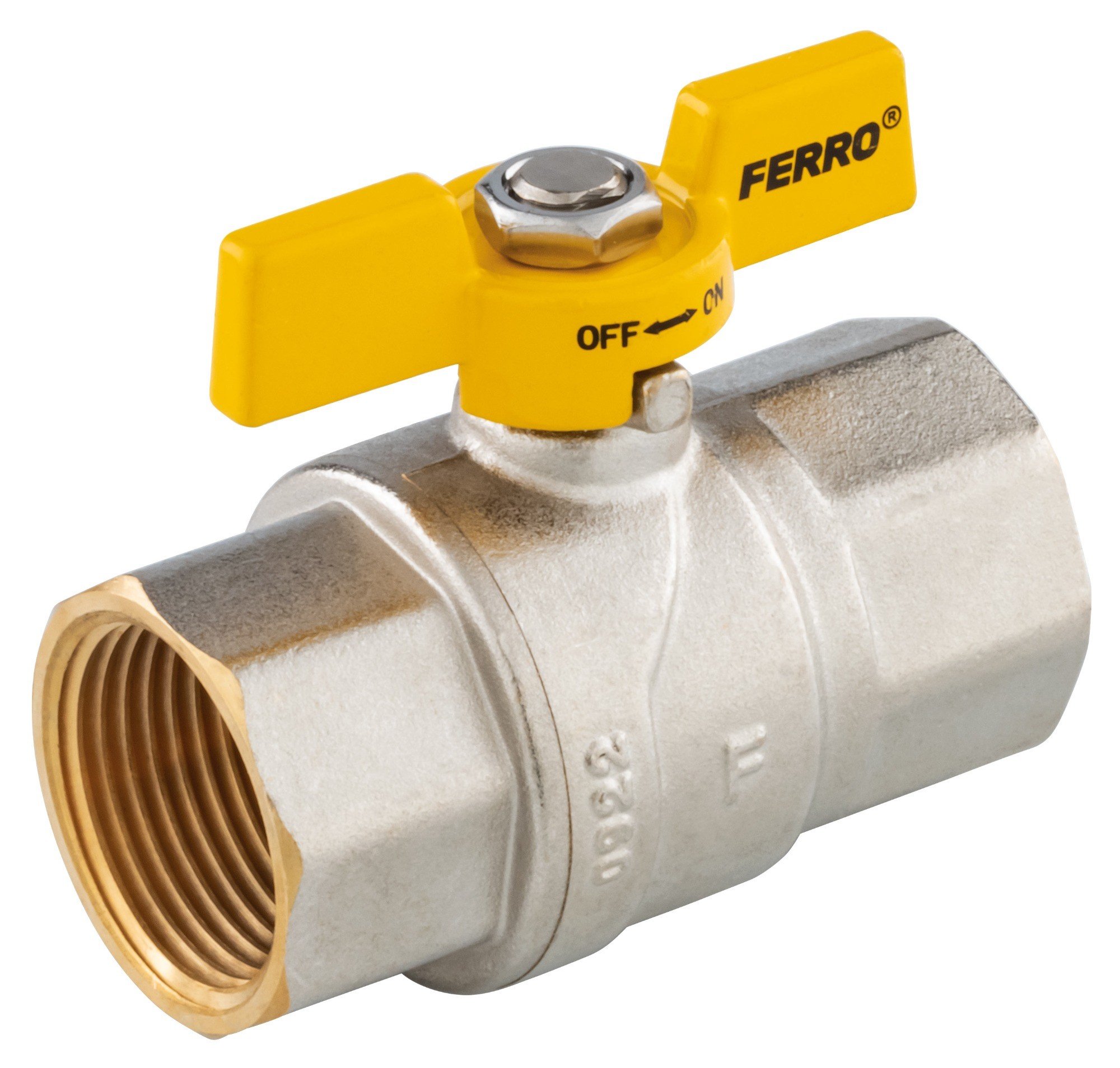 Robinet gaz cu bila Ferro KGMN 1" interior-interior cu maner fluture