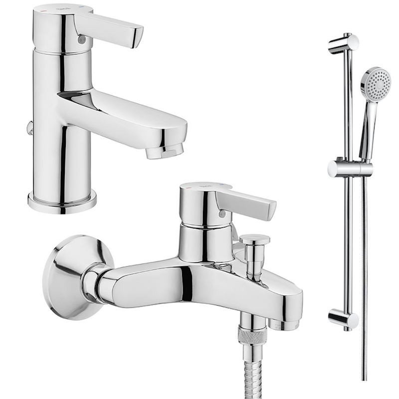 Set baterii de baie Roca Saona format din baterie lavoar, baterie cada si dus si set de dus A5D057AC0K