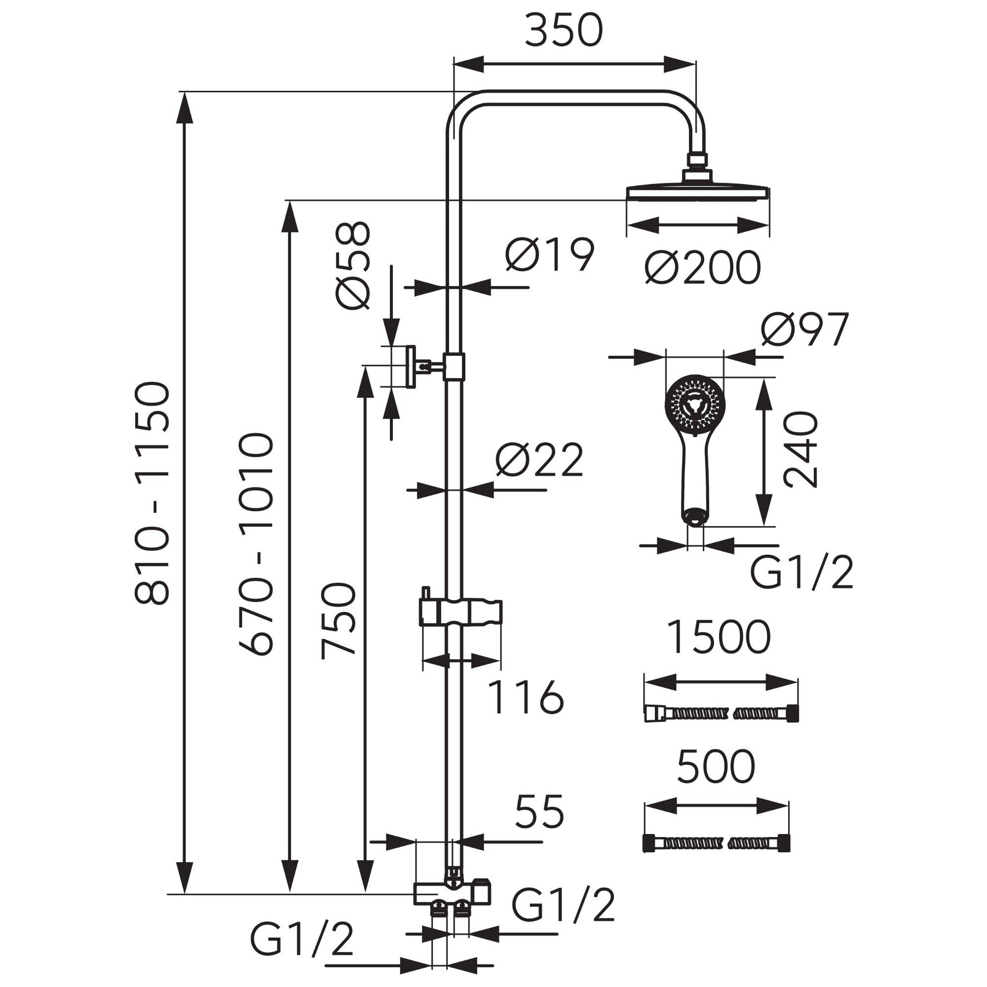 Dusul mobil este compus dintr-o para de dus rotunda cu 3 functii: ploaie, masaj, mixt, cu un suport dus mobil culisant, din plastic, cu unghi reglabil pentru para de dus si un furtun din PVC de 150 cm.