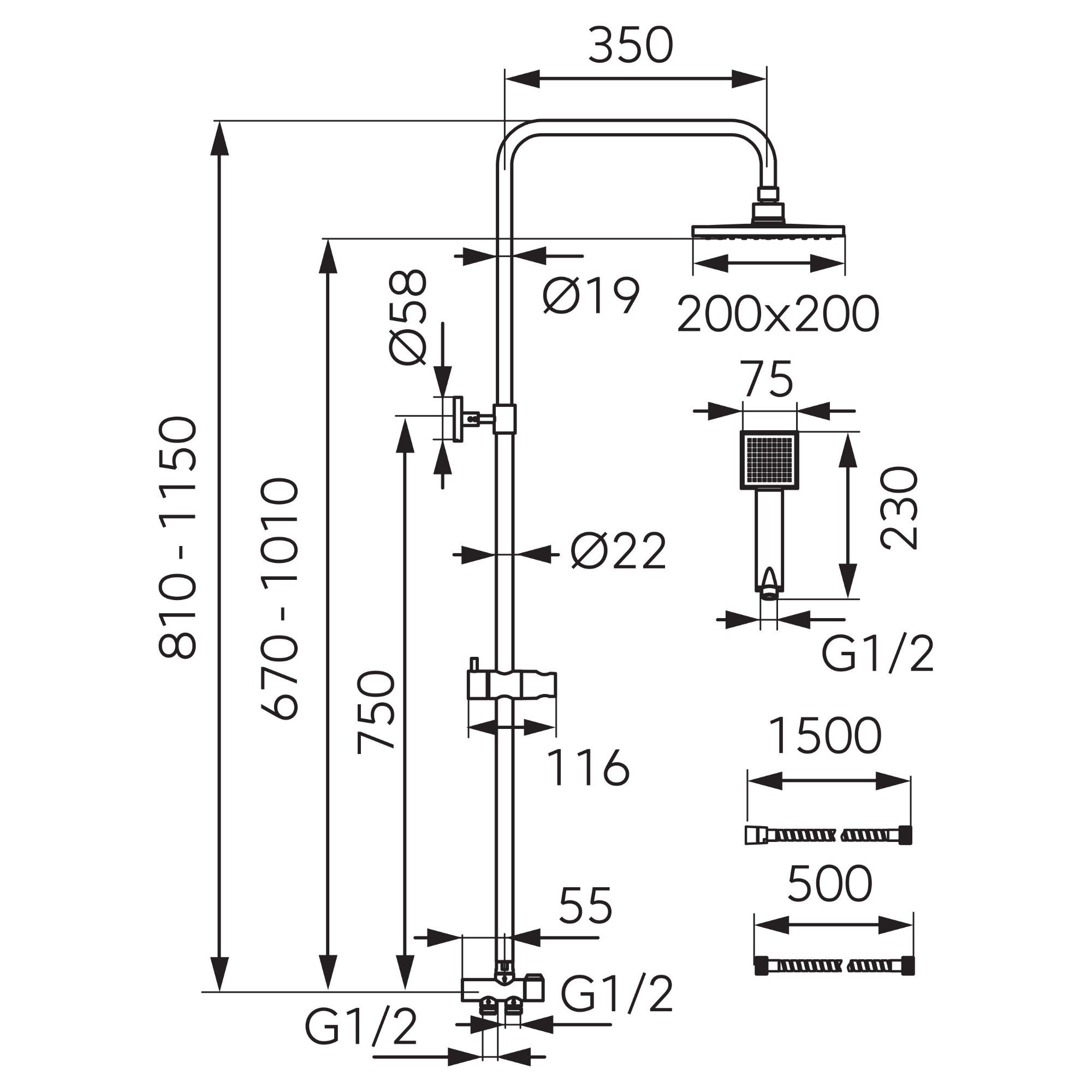 Setul de dus dual Ferro Wizard Square contine toate piesele necesare pentru realizarea unui ansamblu sanitar functional si estetic. Acesta este compus din bara, furtun, para de dus fixa si para de dus mobila.