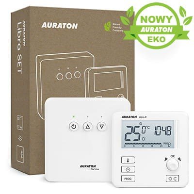 AURATON LIBRA H SET este un controlor de temperatură wireless echipat cu un ecran iluminat care permite gestionarea a 9 programe configurabile independent. Vă permite să setați 3 temperaturi – zi, noapte, anti inghet. Regulatorul este echipat cu așa-numitele modul hotel care vă permite să limitați programatic intervalul de control al temperaturii.