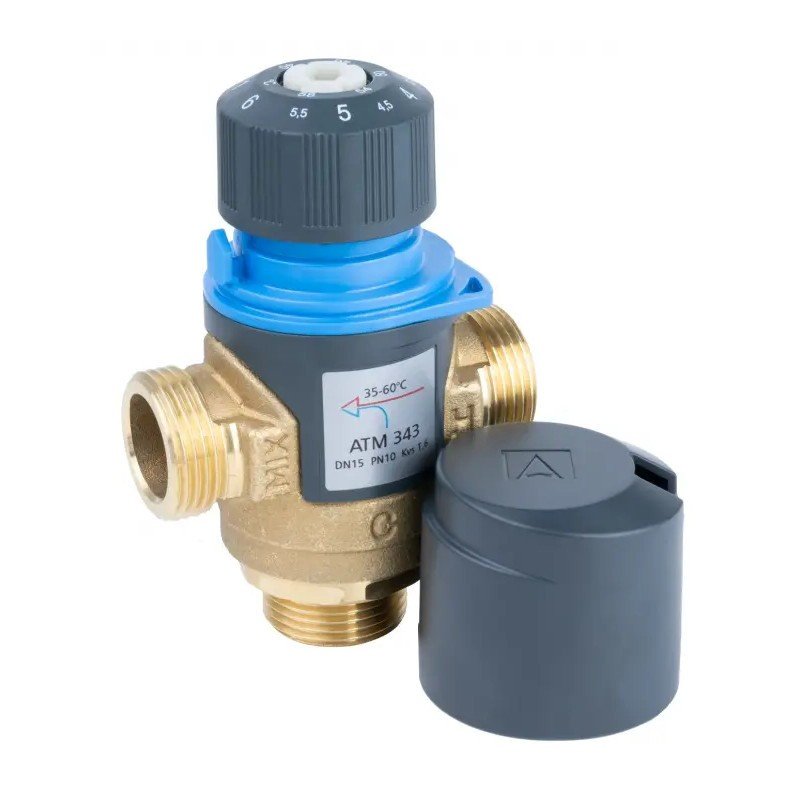 Ventilul termic de amestec Afriso ATM 363 3/4" este destinat pentru prepararea directă a apei calde menajere în instalații de încălzire, în pardoseală sau instalații de încălzire cu sursă dublă de energie (panouri solare și centrală), cu funcție anti-opărire. Asigură o precizie foarte bună de reglare pe portul de amestec indiferent de variațiile de temperatură sau presiune dintre portul de apă rece și caldă.